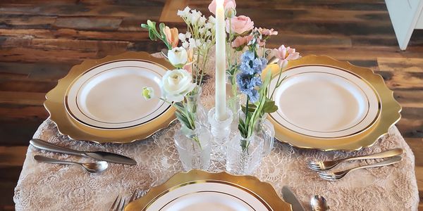 At Porcelain & Lace, we pride ourselves on providing an exquisite selection of vintage china and flatware. Our unique floral plates and silver-plated silverware will elevate your event and impress your guests.